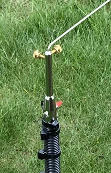 [Moving the stinger whip up/down has little effect on SWR.]
