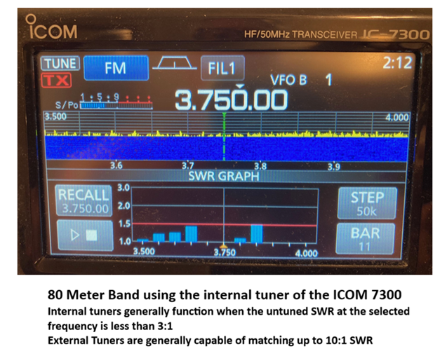 Sometimes the SWR, depending on the earth and surrounding structures, is >3:1 (more often in the 80 Meters Band where